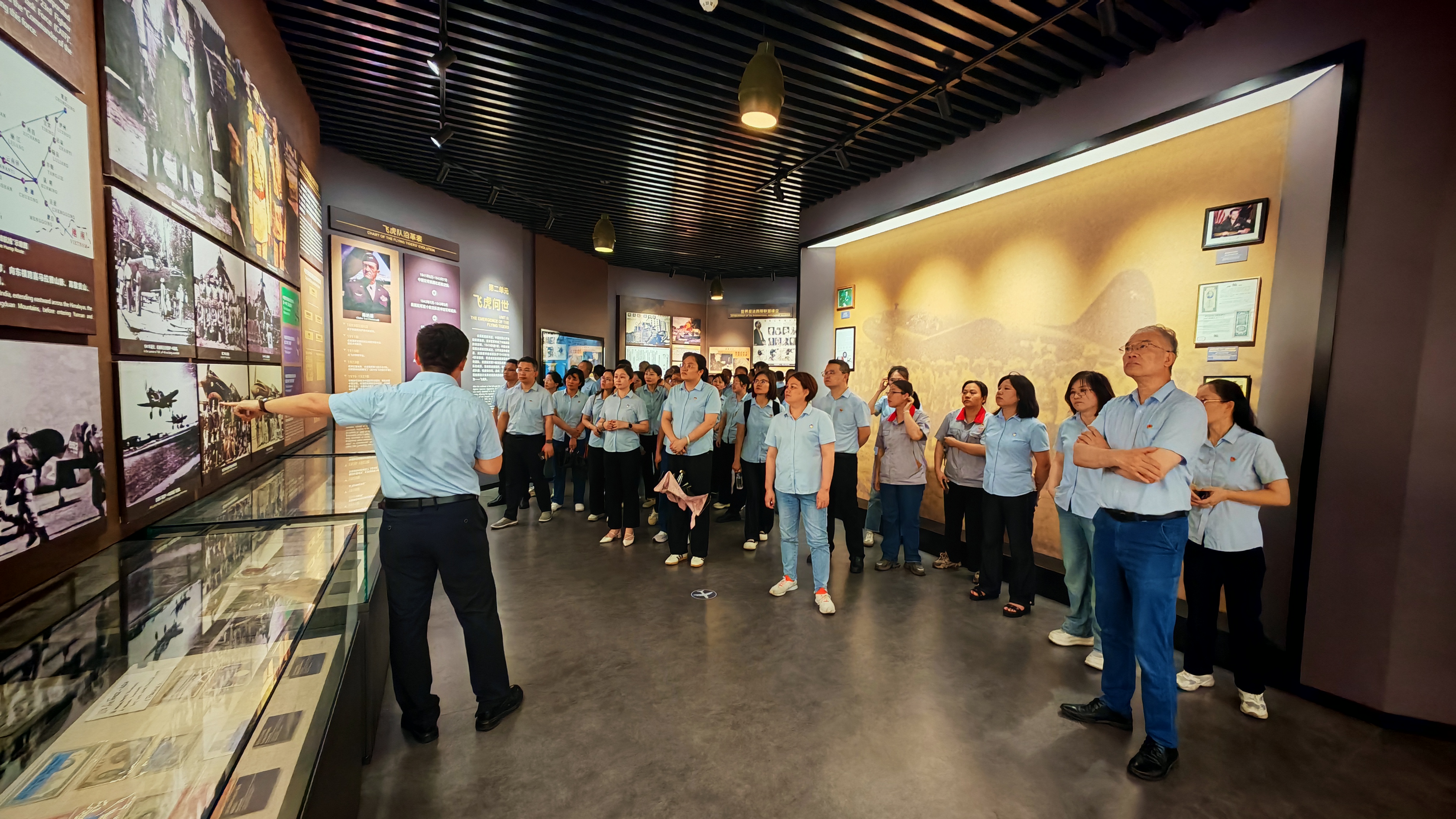 活動中,黨員們懷著崇敬的心情,認真觀摩了飛虎隊紀念館內陳列的作戰遺物、歷史照片等珍貴史料,并在飛機館瞻仰了曾翱翔于抗戰烽火的C-47運輸機。一件件實物、一幅幅影像,無聲訴說著那段血與火的歲月,讓同志們身臨其境地感受到飛虎隊將士們臨危不懼、視死如歸、勇往直前的英雄氣概。